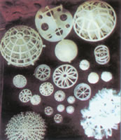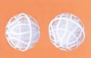 4.1 無(wú)剩余污泥懸浮型生物填料 它是用塑料注造二個(gè)半園形的魚(yú)網(wǎng)狀的球形。中心放置塑料編織絲或小塊海綿。在污水的生化處理中具有全立體結(jié)構(gòu),比表面積大,直接投放,無(wú)須固定,易掛膜,不堵塞。全塑結(jié)構(gòu)單元填料具有A/O、A2/O水解--好氧功能,剩余污泥極少,使用壽命長(zhǎng)。
