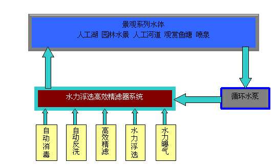 詳細(xì)介紹 一、設(shè)備設(shè)計(jì)理念 城市景觀水體用以修飾環(huán)境、給人以美感,維護(hù)生態(tài)平衡。但是由于當(dāng)初設(shè)計(jì)的局限性和后期的污染及水質(zhì)管理措施等方面的問題,導(dǎo)致水質(zhì)迅速惡化,景觀效果大為降低,有些嚴(yán)重的更是影響周圍居民的正常生活! 城市污水是城市發(fā)展中的產(chǎn)物。但是隨著城市經(jīng)濟(jì)發(fā)展,排放的污水越來越多,水質(zhì)越復(fù)雜,大量的污水傾泄入水體和土壤,破壞了水體和土壤的自然生態(tài),使水體物種消失、變成了臭河死湖,土壤里重金屬和有毒物質(zhì)富集,污染物通過食物鏈危害我們的身體健康,造成巨大的經(jīng)濟(jì)損失,制約了社會(huì)可持續(xù)性發(fā)展。 1)變靜為動(dòng):采用水力浮選水處理系統(tǒng),景觀湖面水體形成上下游,靜止的湖面形成流動(dòng)。創(chuàng)造了流水不腐、水體自凈的可能性。也使狹窄河道流段有明確的水流顯現(xiàn),更增加園內(nèi)的天然野趣和動(dòng)態(tài)情感。 2)水流循環(huán)處理:水體全部水都要周而復(fù)始地進(jìn)入水力浮選加氧水處理系統(tǒng),經(jīng)過系統(tǒng)的五大功能處理,周而復(fù)始地得到更新,使全湖進(jìn)入良性循環(huán),溶解氧始終達(dá)到飽和水平,始終鮮化、活化,始終不變質(zhì),不發(fā)臭,形成良性循環(huán)。 3)水質(zhì)優(yōu)良:湖水清澈,賞心悅目。始終保持湖水的低濁度,有很好的透明度,使水面藍(lán)波蕩漾。全部湖水具有“免疫力”,含有適量的殺菌因子。湖水不僅基本無菌,還具有微小的抑菌能力。 二、設(shè)備采用技術(shù) 1) 水力自動(dòng)溶氧功能 水力自動(dòng)溶氧功能是模擬了自然界瀑布跌落和溪流的流動(dòng)過程,使水在跌落和流動(dòng)的過程中進(jìn)行水流細(xì)分,在空氣形成三個(gè)極薄的水幕,根據(jù)氧轉(zhuǎn)移原理,降低液膜厚度,加速氣、液界面的更新,增大氣、液接觸面積與空氣接觸,實(shí)現(xiàn)依靠水的特性進(jìn)行物化轉(zhuǎn)移和物化反應(yīng)。即:充分吸收空氣中的氧氣增加水體自身含氧量進(jìn)行氧化反應(yīng)同時(shí)釋放出氨氣、二氧化碳等有害氣體。在氧化還原的作用下,水中的溶解氧可以與污染物發(fā)生激烈的氧化反應(yīng),由此可以降解或去除一部分水體中的有害物質(zhì)。2) 水力自動(dòng)浮選功能 通過瀑氣的作用,使水體產(chǎn)生了大量的泡沫。泡沫是油質(zhì)、脂肪、蛋白、酶、氨氮、有機(jī)磷、陰離子合成劑、洗衣粉、肥皂泡、苯、酚、萘等有機(jī)物質(zhì)。當(dāng)夾雜著泡沫的原水到水處理設(shè)備過濾層上時(shí),由于泡沫比水輕,濾室液面上方管道和大氣相通,設(shè)備內(nèi)壓力極小,濾層采用粒徑較小、比重較大的天然礦質(zhì)反復(fù)合濾料,泡沫不能通過下面過濾層,所以只能浮在水面上方。當(dāng)泡沫越積越多越堆越厚,最終從浮選管道裝置逸出或者當(dāng)設(shè)備反沖洗時(shí),泡沫隨著污水一塊被沖走,最終排入雨水管道。隨著設(shè)備的不間斷循環(huán)使水中各種有害物質(zhì)日漸減少,最終達(dá)到水質(zhì)標(biāo)準(zhǔn),并且進(jìn)入良性循環(huán)、逐漸優(yōu)化水體。 河道、湖泊、景觀水處理都是無限循環(huán)水處理,全部水體要一次又一次地進(jìn)機(jī)處理,曝氣發(fā)泡要一次又一次地進(jìn)行,漂浮泡沫不斷地被浮選裝置逸出排走,有機(jī)物質(zhì)不斷地被清除,直至減少到無泡沫產(chǎn)生。此過程使水體中發(fā)泡的各種有害物質(zhì)得到較徹底地清除。3) 重力微壓精濾 按滲井原理設(shè)計(jì)的精濾層,第一層粒徑、厚度最大;第二層粒徑、厚度次之;第三層粒徑、厚度逐步減薄……。第一層截留顆粒重的60%,顆粒數(shù)的80%,第二層截留顆粒重的100%.每一層都允許穿透過一定量懸浮物或雜質(zhì),每一層都沒有堵死,都有空隙。將“呼”不出、“浮”不去的固體或懸浮微粒截留。滲井的特點(diǎn)是,污水雖然濃度大,含污量大,但長(zhǎng)期使用不會(huì)堵死,不會(huì)不再滲水。按此理論設(shè)計(jì)的精濾機(jī)具有同樣效能,不易堵塞,不會(huì)頻繁沖洗,使工作周期大大延長(zhǎng)。 三、工藝流程