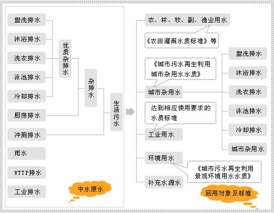 一、中水水源與水質(zhì) 1.1、中水水源 中水水源包括:冷卻排水、淋浴排水、盥洗排水、廚房排水、廁所排水、城市污水廠二沉池出水和工業(yè)污水作為中水水源等。嚴禁傳染病醫(yī)院、結(jié)核病醫(yī)院污水和放射性污水作為中水水源。對于住宅建筑可考慮除廁所生活污水外其余排水作為中水水源;對于大型的公共建筑、旅館、商住樓等,采用冷卻排水、淋浴排水、盥洗排水作為中水水源;公共食堂、餐廳的排水水質(zhì)污染程度較高,處理比較復(fù)雜,不宜采用;大型洗衣房的排水由于含有各種不同的洗滌劑,能否作為中水源須經(jīng)試驗確定。 1.2、中水水質(zhì) 中水作為生活雜用水,其水質(zhì)必須滿足下列基本條件:(1)衛(wèi)生上安全可靠,無有害物質(zhì),其主要衡量指標有大腸菌群數(shù)、細菌總數(shù)、懸浮物量、生化需氧量、化學耗氧量等;(2)外觀上無不快的感覺,其主要衡量指標有濁度、色度、臭氣、表面活性劑和油脂等;(3)不引起設(shè)備、管道等嚴重腐蝕、結(jié)構(gòu)和不造成維護管理的困難,其主要衡量指標有PH值、硬度、溶解性固體等。我國現(xiàn)行的中水水質(zhì)標準有:《生活雜用水水質(zhì)標準》(CJ25.1—89)、《生活雜用水標準檢驗法》(CJ25.2—89)。
