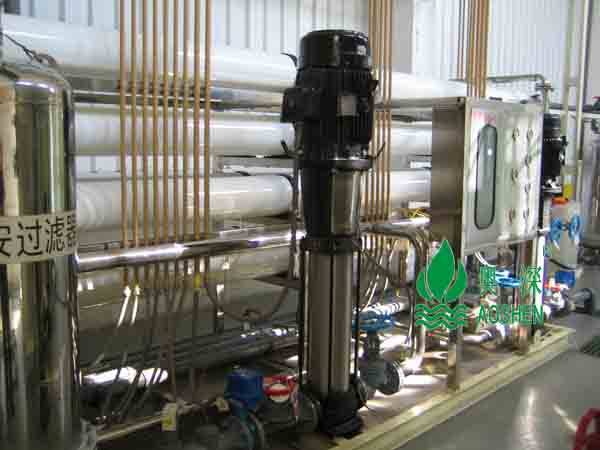 2、第二種采用兩級反滲透設(shè)備,其特點(diǎn)為初次投資比采用離子交換樹脂方式要稍高,但無須樹脂再生。其缺點(diǎn)在于相關(guān)膜原件需定期清洗或更換,水質(zhì)相對來說不是太高,大都只能做到1us/cm左右,所以在水質(zhì)要求更高的時候通常采用一級反滲透后面再用陰陽離子混合床。是目前比較經(jīng)濟(jì)與流行的一種工藝。